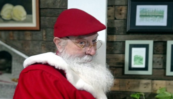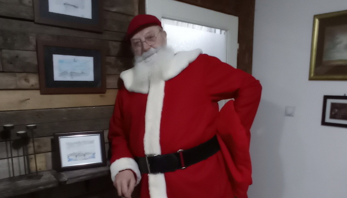 Kucam na vrata i zvečim praporcima. Pošaljete dete da otvori vrata i kreće zabava :) Dovoljna je jedna jača stolica (Deda Mraz se dobro hrani ;) ) bez naslona ako je moguće, blizu jelke tako da dok pričam i zabavljam dete (decu) možete da napravite fotografije ili video snimke.